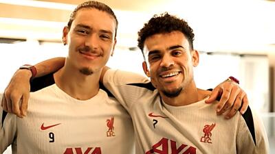 Sin embrago, Díaz –uno de los más queridos por la afición– solo tuvo un par de segundos cuando se muestran rápidamente 2 de sus goles y luego aparece en una rápida toma abrazado con el atacante uruguayo Darwin Núñez, como se ve a continuación (desde el minuto 1:00):