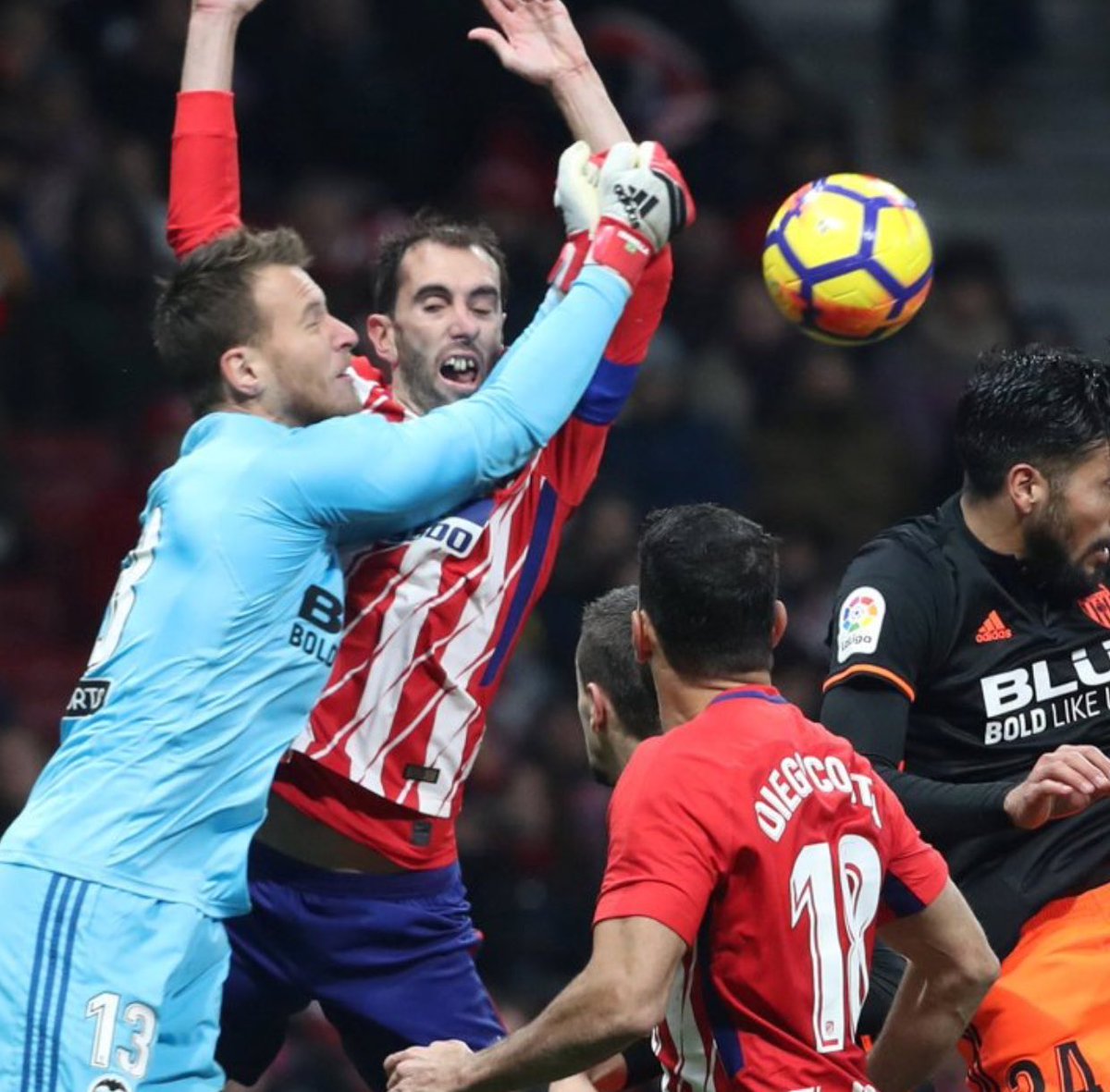 El defensor del Atlético de Madrid, en el partido con el Valencia, recibió fuerte golpe en su boca por parte de Neto. En el video se ve cuando algunos dientes se desprenden.