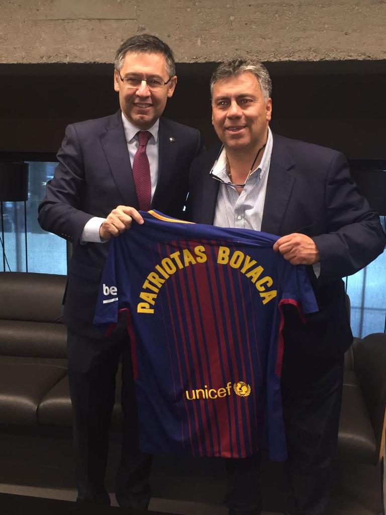 Familia Patriotas. Josep Maria Bartomeu, presidente de @FCBarcelona en un gesto de amistad con @patriotasboySA #SoyPatriota #SoyBoyacense #BoyacáEsGrande #FamiliaPatriotas pic.twitter.com/9ZksBlzudd