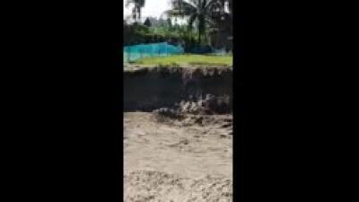 En la impresionante grabación se muestra el momento en el que el tigre se abalanza sobre un hombre y ambos caen por un desnivel de aproximadamente 4,5 metros de altura.
